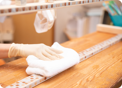 施設内では、定期的に施設内の消毒を行い、入居者様が安心して過ごせる環境を整えています。スタッフは常にマスク着用や手指消毒を徹底し、感染症予防のためのガイドラインに基づいて行動しています。入居者様が安心して過ごせるよう、感染症予防に最大限の努力をしています。