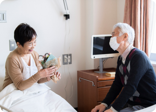 ご家族や来訪者様にも、施設に入館される際のマスク着用と手指消毒をお願いしております。また、面会の際には、感染症拡大防止のための時間制限や人数制限を設ける場合があります。事前に面会の詳細をスタッフと調整いただくことをおすすめします。